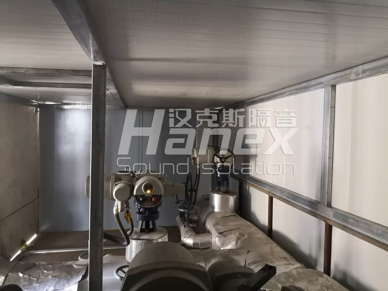 在設(shè)備東、南2側(cè)面上搭建框架,安裝吸聲板塊,削弱間斷排氣噪聲噪聲值。