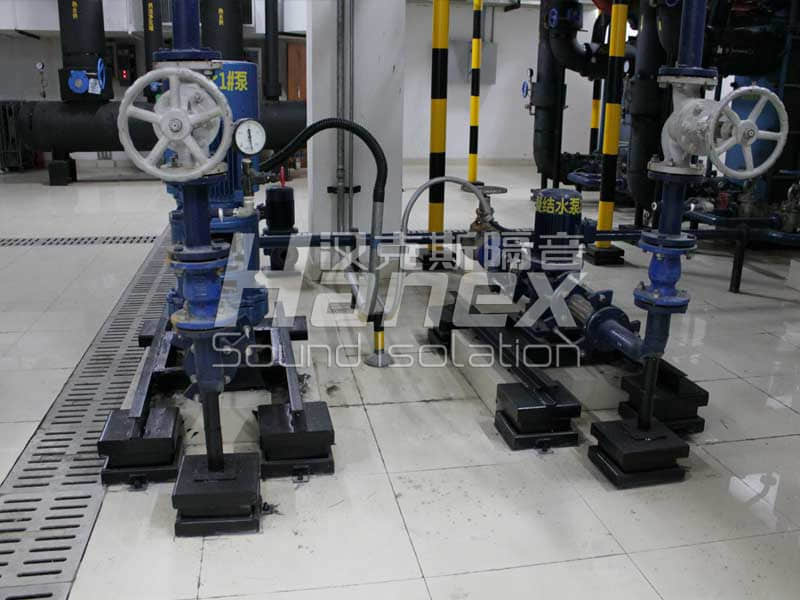 5、 從國(guó)內(nèi)已有的案例與我們漢克斯隔音的實(shí)踐來看,地下室設(shè)備房?jī)?nèi)減振降噪,通常是通過支架全部落地,同時(shí)對(duì)支架與設(shè)備基礎(chǔ)進(jìn)行減振來處理(如紹興人民醫(yī)院住院部的案例);