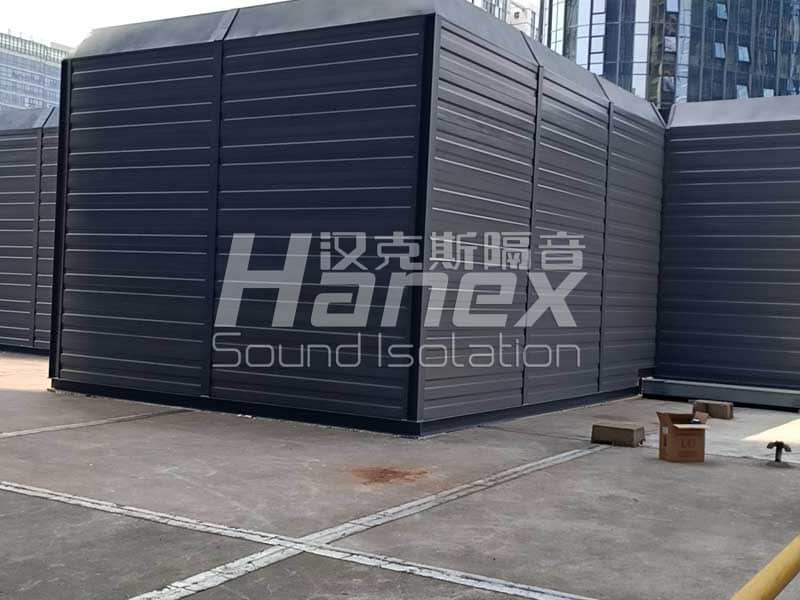4、現(xiàn)場(chǎng)除了空調(diào)機(jī)組外,還有3臺(tái)水泵電機(jī)也需要做降噪措施。我司技術(shù)人員商討后決定在其部位安裝隔聲棚,隔聲棚采用鋼制復(fù)合吸隔聲板。為保證水泵電機(jī)的通風(fēng)散熱問(wèn)題,隔聲棚東側(cè)及北側(cè)敞開(kāi)。