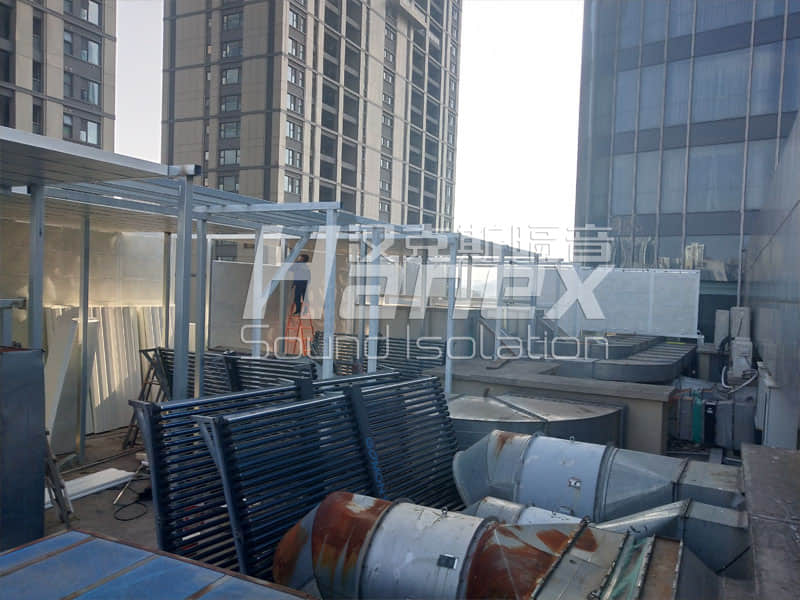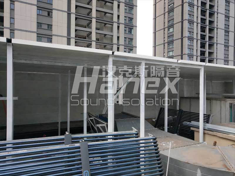 1、經(jīng)過漢克斯隔音技術(shù)人員現(xiàn)場踏勘及結(jié)合業(yè)主所提供的資料,屋頂上設(shè)計安裝半隔聲房降噪措施。